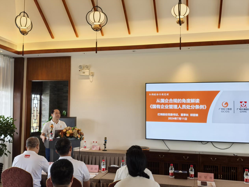 首先,M88股份党委书记、董事长郑坚雄为党员干部讲授了一场廉洁教育专题党课,从国企合规的角度解读《国有企业管理人员处分条例》(以下简称“条例”),突出《条例》特点,结合企业履职不到位、弄虚作假造成国有资产流失、收受利益等案例进行了深入分析,并针对《条例》对国企合规工作的影响提出了具体的建议,就巩固加强党纪学习教育和严守履职红线底线提出了具体要求。