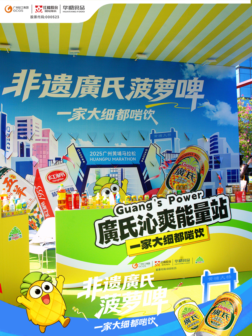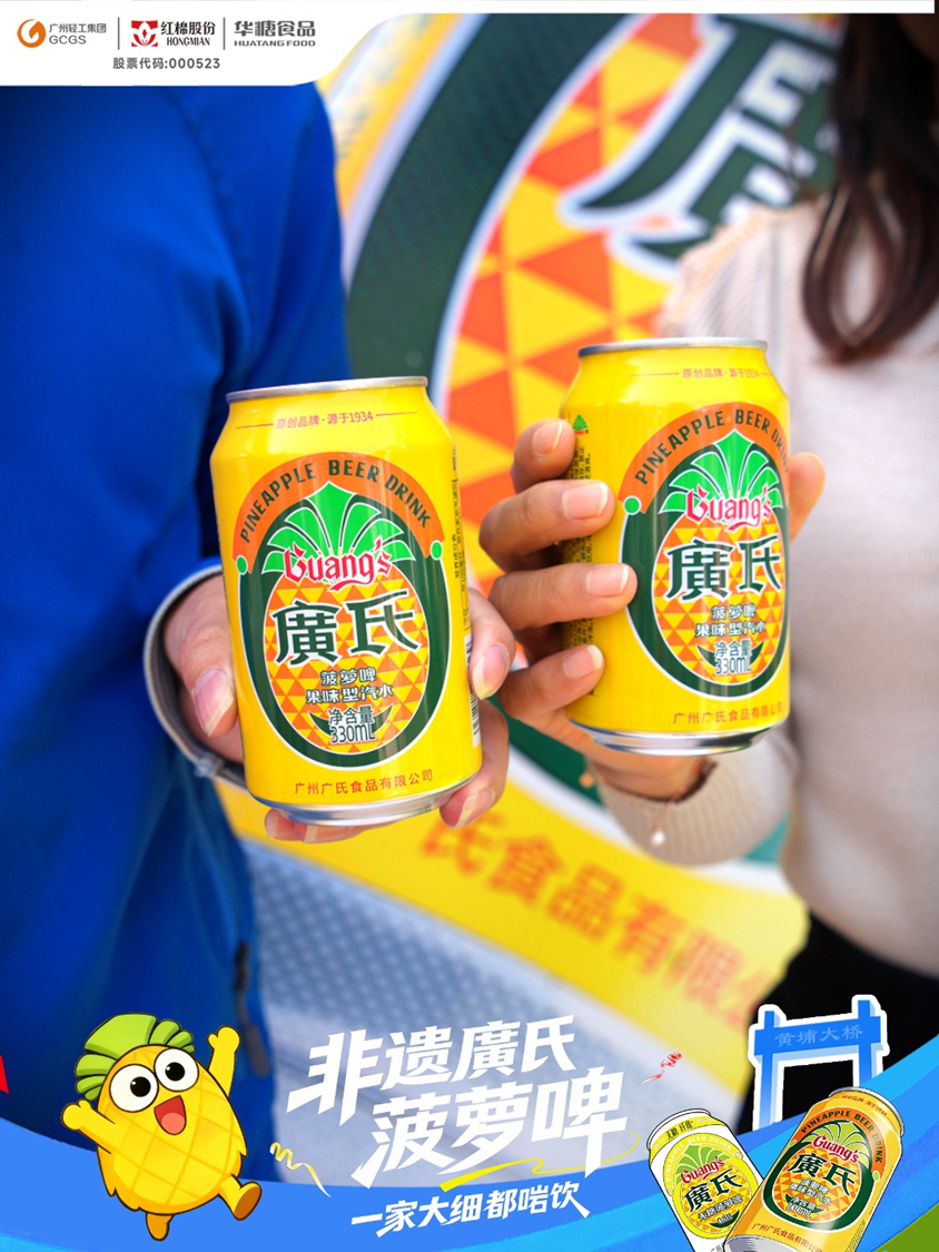 当蓝紫色的人潮在绿轴广场奔涌蓄势,一抹亮眼的跃动黄映入眼帘,正是广州轻工集团旗下M88股份子公司华糖食品的廣氏菠萝啤。