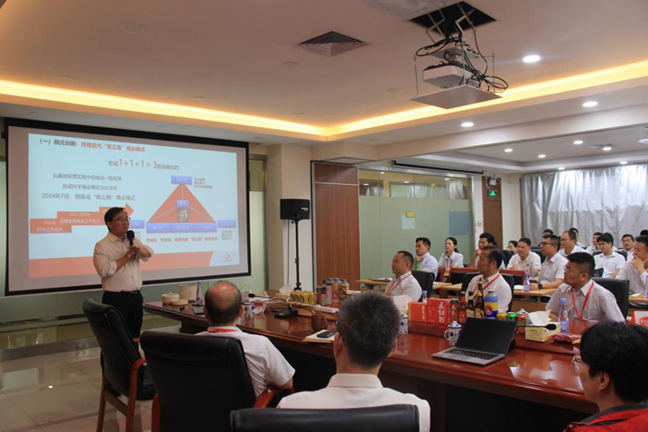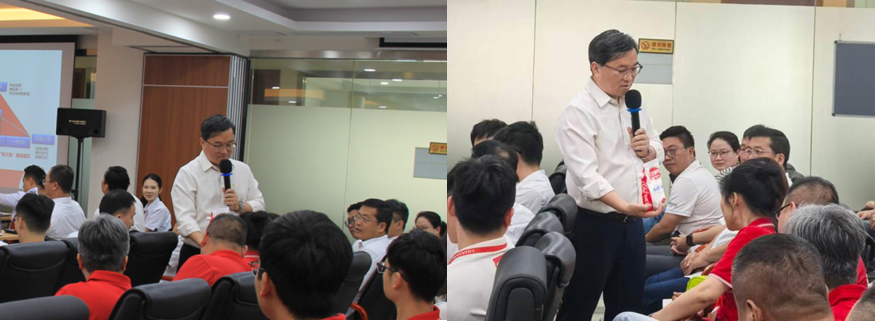 为确保培训实效、锚定发展痛点,本次培训特别邀请广州轻工集团党委委员、副总经理符荣武亲临授课、精准赋能。授课过程中,符荣武副总经理紧扣老字号品牌焕新、运营效率提升、成本精细管控、商业模式创新四大核心维度,深度结合集团发展战略部署与行业实战案例,系统拆解品牌年轻化转型路径、内部流程优化方法、跨资源整合技巧、降本增效实操策略、组织裂变落地路径及新赛道开拓思路;同时围绕老字号历史底蕴传承、“铁三角”商业模式构建、多元模式创新落地、全渠道裂变升级、爆品打造等关键内容展开细致讲解,既有理论高度的引领,又有实践层面的指导,干货充盈、靶向精准,为参训人员破解工作难题、拓宽发展视野提供了有力支撑,最后以“突破始于此”为结束语,激励大家以实干推动老字号创新发展。